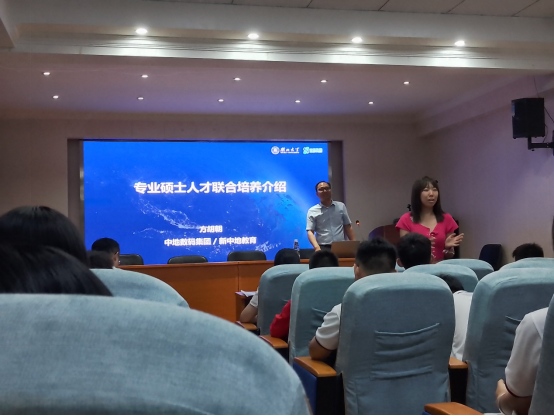 为进一步加强校企合作,推进产学研一体化发展,培养复合型、创新型人才,9月12日下午,公司联合中地数码集团举行专硕人才联合培养宣讲会。本次会议由中地数码集团/新中地教育教研主任方胡朝主持,公司副经理于婧、梅新、研究生秘书吴思及公司部分2023级研究生新生参会。