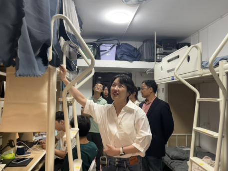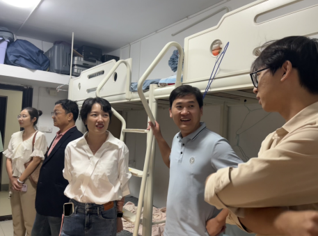 为更好了解2023级研究生新生、2022级阳逻回迁的本科生的生活情况,激励同学们以积极的精神面貌投入校园学习和生活。db真人体育官网结合“入千室、访万生”大走访活动要求,9月13日晚,由资源环境公司党政领导班子成员、公司辅导员、班主任老师一同开展走访寝室慰问工作。