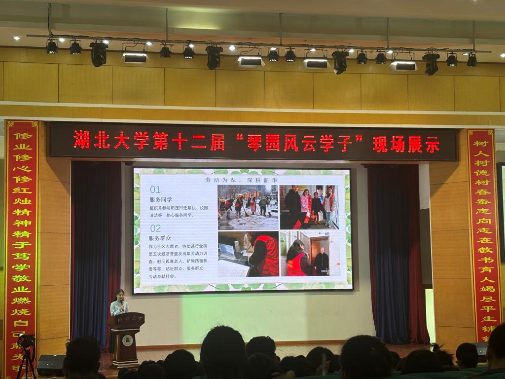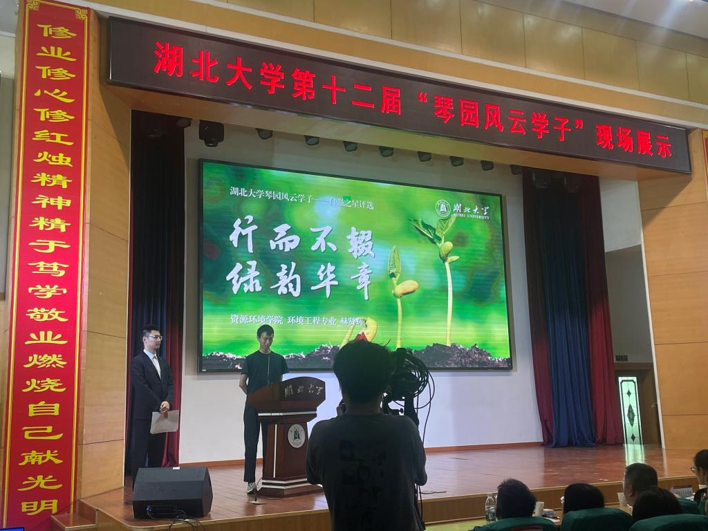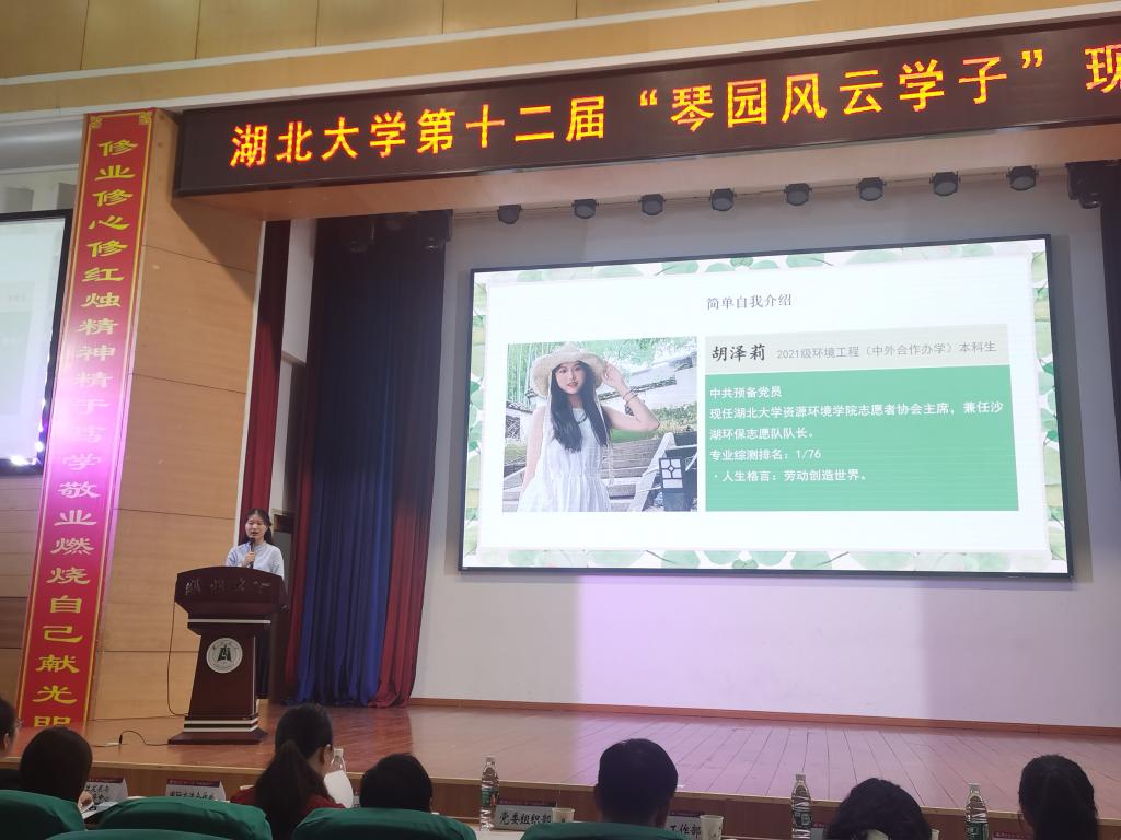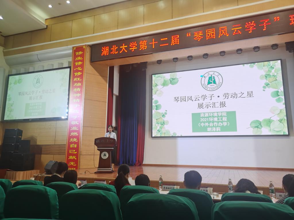 2021级环境工程(中外合作)专业胡泽莉同学以“劳动为犁,深耕韶华”为主题进行展示。她现任db真人体育官网志愿者协会主席、沙湖环保志愿队队长,多次参与志愿服务活动,不仅在志愿服务方面表现突出,学习成绩同样名列前茅,展现了资环学子风采。