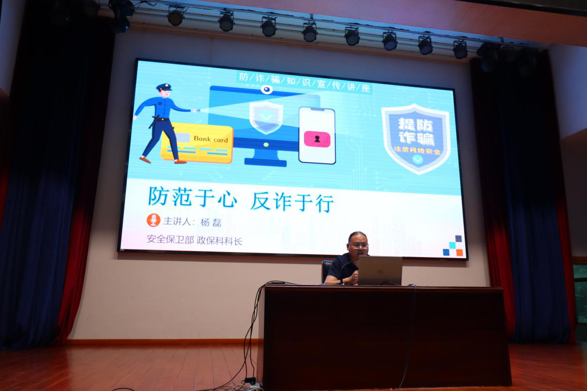 为深入学习贯彻习近平新时代中国特色社会主义思想和党的二十大精神,贯彻落实上级部门及公司关于安全工作的相关要求,教育引导员工牢固树立安全意识、提高安全防范能力,筑牢校园安全防线,2024年5月9日晚,db真人体育官网邀请公司安全保卫部政保科科长杨磊老师为公司硕博研究生、本科生作一场题为“防范于心 反诈于行”的安全教育系列讲座,本次讲座公司全体员工参加。