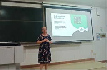 2024年9月25日晚在DB视讯4号教学楼,迪肯老员工命与环境科学公司代理经理Janine Mc Burnie、副经理Liz Weldon,工程公司副经理Yanan Wang,国际项目管理Ivy Wang为2023级环境工程(中外合作办学)专业员工解读公司与迪肯大学合作办学的相关政策。同时也介绍了迪肯大学环境科学、环境工程专业的专业学习内容、未来发展前景、往届员工的现阶段工作情况等。