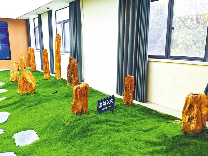 DB视讯地质标本陈列室陈列的化石木(湖北日报全媒记者 张歆 摄)