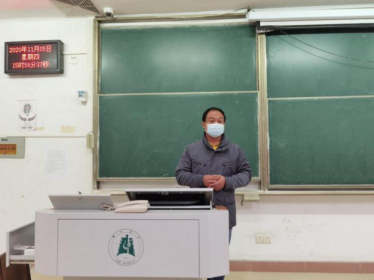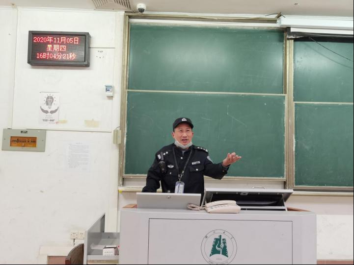 11月5日下午,集团保卫处副处长杜国雄老师、湖大社区民警吕康警官在4号教学楼209教室为资环2020级本部新生开展了一堂别开生面的“老员工防诈骗安全教育讲座”。