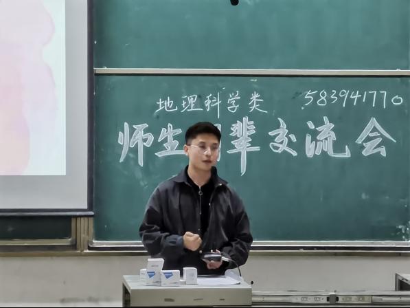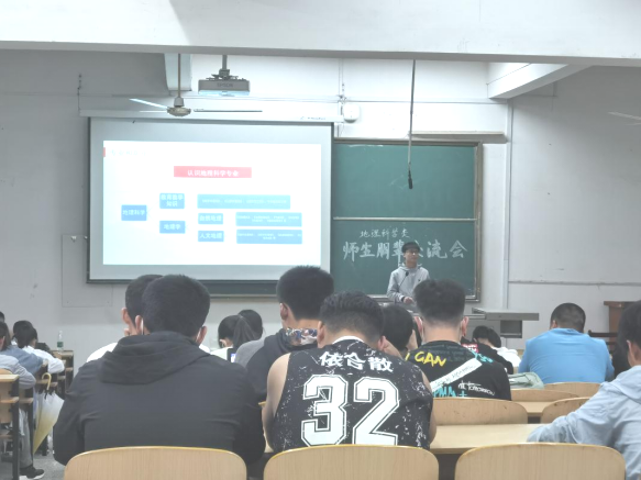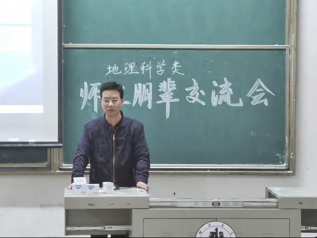 为增进2020级员工对专业的认知,帮助同学们更好制定大学学习规划,4月20日晚,资源环境公司党委副书记李明老师,院团委书记邓琪老师,2017级优秀毕业生代表张鸣钊、马超楠、黄博健、闫华涛等同学赴阳逻校区开展地理科学类师生朋辈交流会;通识教育公司润德苑辅导员段秋炯主持交流会,2020级地理科学类全体员工参加交流会。