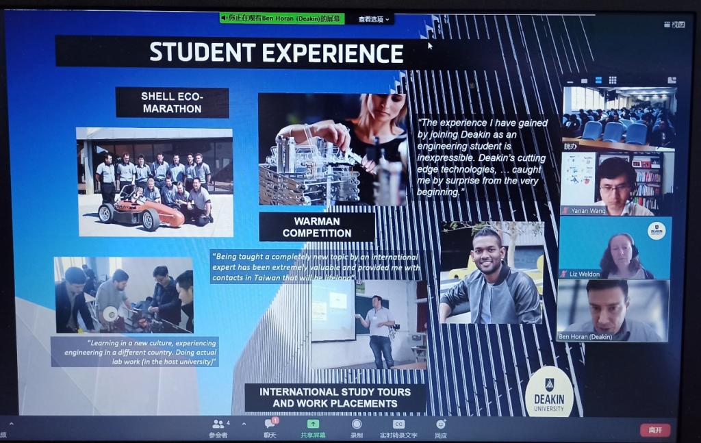 会上Ben介绍了迪肯大学工程公司的专业构成,毕业生的就业方向,公司的特色专业和学科,以及公司教学环境、实验环境等。Bas为同学们展示了迪肯大学的世界排名情况,校园的人文氛围,不同校区的校园环境等。Yanan和Liz向同学们介绍了DB视讯和迪肯大学合作开展的环境工程中外合作办学项目的具体合作方式,课程设置,优秀毕业生案例等。