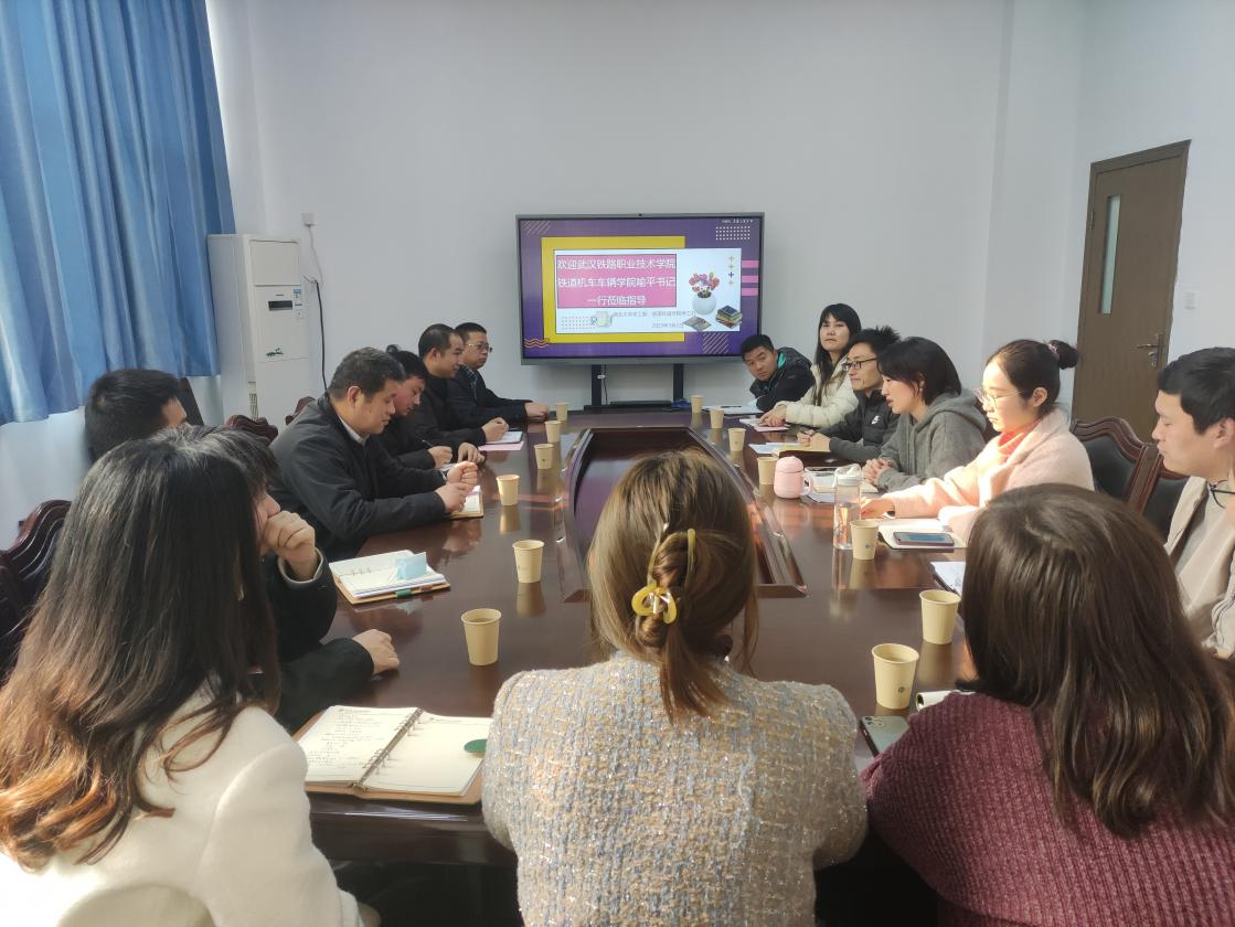 3月2日下午,武汉铁路职业技术公司铁道机车车辆公司党总支书记喻平、武铁职学工部副部长王舒等一行莅临公司调研交流相关工作。db真人体育官网公司党委副书记李岚、辅导员李彦伯、邓琪、韩鹏振参加座谈会。