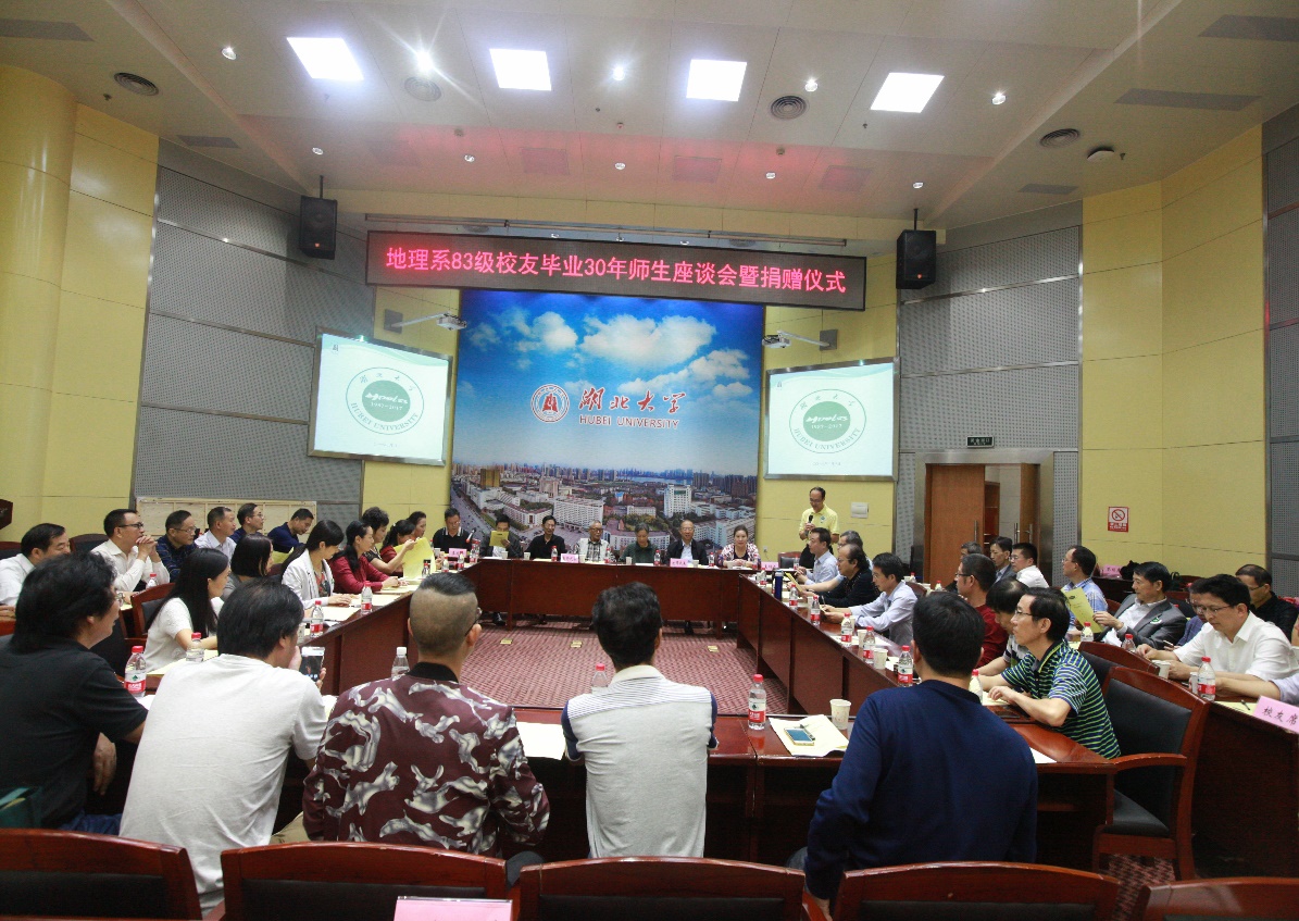 10月3日,在DB视讯建校86周年校庆日当天,db真人体育官网迎来了离“家”三十周年的毕业生们,他们就是DB视讯地理系83级员工们。经过聚会活动筹备组与资环公司员工办长期的筹划,怀着对母校的深情牵挂和对同窗相逢的期盼与喜悦,来自天南地北的40余名员工重返母校团聚,6名任课教师代表与db真人体育官网经理李兆华、党委副书记李明、副经理周建刚出席座谈会。