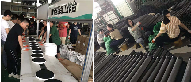 实习的最后两天,在闷热的生产车间里,同学们仍耐心学习,了解曝气设备生产过程并学习动手组装技术,亲自动手组装曝气盘、曝气管。