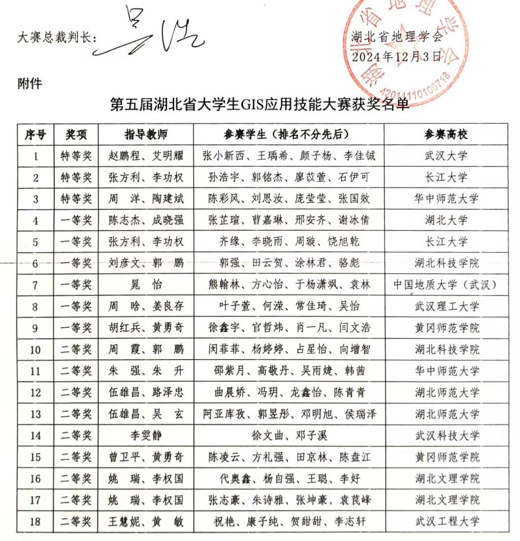 2024年11月9日,第五届湖北省老员工GIS应用技能大赛于武汉理工大学成功举办。11月22日-24日,第十三届全国老员工GIS应用技能大赛于兰州交通大学成功举办。公司陈志杰、成晓强老师指导的2022级地理信息科学专业员工团队(张芷瑄、曹嘉琳、邢安齐、谢冰倩)代表DB视讯参与了国省两赛,且均斩获了一等奖的优异成绩。