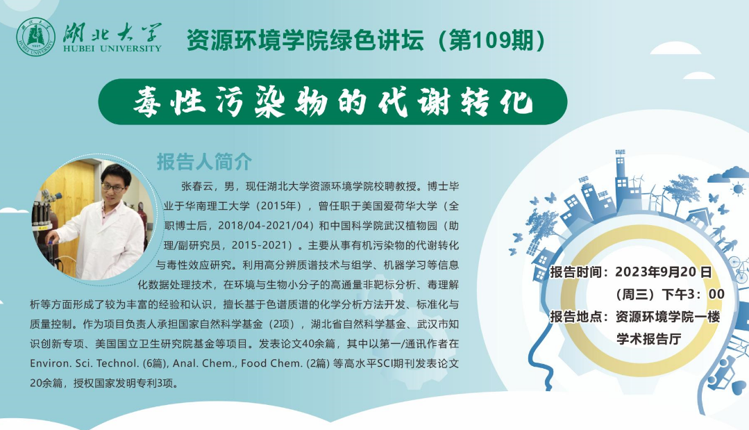专家简介:张春云,现任db真人体育官网校聘教授。博士毕业于华南理工大学(2015年),曾任职于美国爱荷华大学(全职博士后,2018/04-2021/04)和中国科公司武汉植物园(助理/副研究员,2015-2021)。主要从事有机污染物的代谢转化与毒性效应研究。发表论文40余篇,其中以第一/通讯作者在Environ. Sci. Technol. (6篇), Anal. Chem., Food Chem. (2篇) 等高水平SCI期刊发表论文20余篇,授权国家发明专利3项。