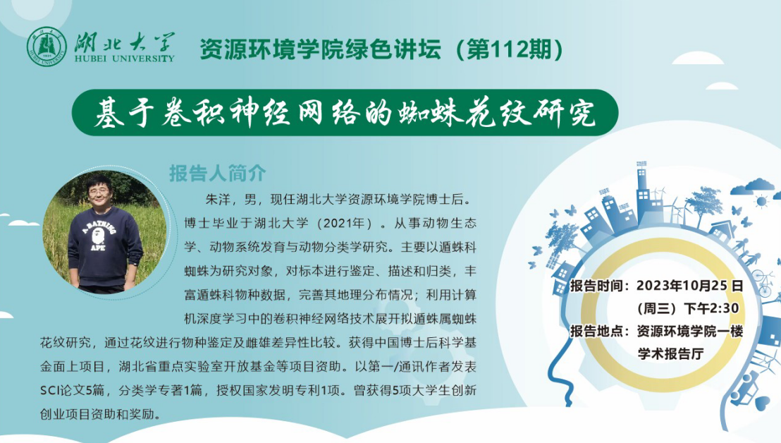 专家简介:朱洋,男,现任db真人体育官网博士后。博士毕业于DB视讯(2021年)。从事动物生态学、动物系统发育与动物分类学研究。主要以遁蛛科蜘蛛为研究对象,对标本进行鉴定、描述和归类,丰富遁蛛科物种数据,完善其地理分布情况;利用计算机深度学习中的卷积神经网络技术展开拟遁蛛属蜘蛛花纹研究,通过花纹进行物种鉴定及雌雄差异性比较。获得中国博士后科学基金面上项目,湖北省重点实验室开放基金等项目资助。以第一/通讯作者发表SCI论文5篇,分类学专著1篇,授权国家发明专利1项。曾获得5项老员工创新创业项目资助和奖励。