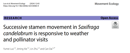 2024年6月8日,公司戴璨教授团队在期刊《Movement Ecology》(生物学SCI一区,IF = 4.1)发表了题为 “Successive stamen movement in Saxifraga candelabrum is responsive to weather and pollinator visits” 的研究论文。