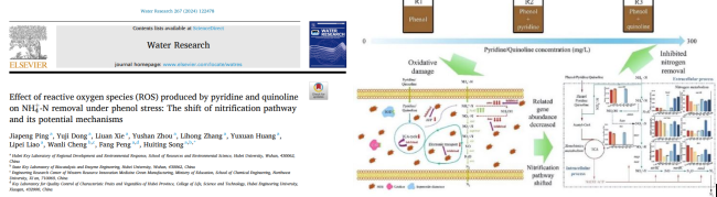 公司宋慧婷教授团队于9月20日在国际知名期刊《Water Research》(中科院1区TOP IF=11.4)上发表题为 “Effect of reactive oxygen species (ROS) produced by pyridine and quinoline on NH4+-N removal under phenol stress: The shift of nitrification pathway and its potential mechanisms” 的学术论文。