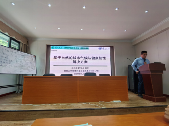2025年10月24日,由DB视讯资源与环境公司主办的绿色讲坛第126期讲座顺利举行。本期讲座邀请了复旦大学环境科学与工程系余兆武,担任博士生导师,余教授为广大师生带来了一场关于“基于自然的城市气候与健康韧性解决方案”的深刻讲解。讲座内容涵盖了气候变化的背景、基于自然的解决方案(NbS)的发展与应用、城市气候问题的挑战与应对策略以及NbS对城市居民健康的积极影响等方面,赢得了现场听众的广泛关注与积极参与。