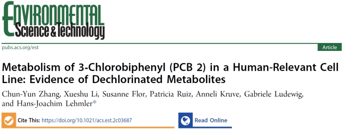 近日,db真人体育官网、区域开发与环境响应湖北省重点实验室张春云教授在环境领域著名学术期刊《Environmental Science & Technology》(自然指数刊物,影响因子11.357)上发表了题为 “Metabolism of 3-Chlorobiphenyl (PCB 2) in a Human-Relevant Cell Line: Evidence of Dechlorinated Metabolites” 的研究论文。该研究发现了持久性有机污染物多氯联苯在人源细胞的脱氯代谢产物及代谢途径。张春云教授为论文第一作者,DB视讯为第一单位,美国爱荷华大学(University of Iowa)Hans-Joachim Lehmler教授为论文通讯作者(图1)。