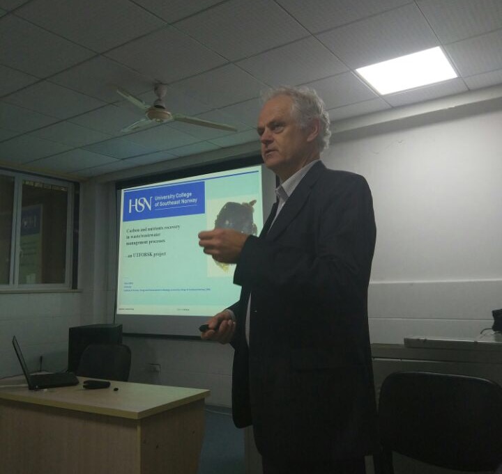 2017年10月18日上午,在db真人体育官网一楼报告厅,公司邀请挪威东南大学Rune Bakke教授为全院师生带来了一场题为“Carbon and nutrients recovery in waste/wastewater management processes”的学术报告,该报告是db真人体育官网“绿色讲坛学术报告”系列讲座之一。此次报告由李兆华经理主持,黄运新老师、张劲老师等多为老师聆听了报告。