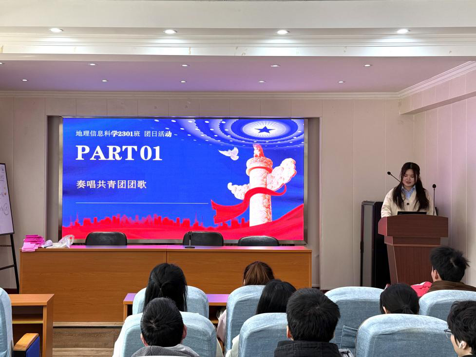 3月18日下午,地理信息科学 2301 班团支部在db真人体育官网一楼会议室成功举办了一场以 “弘扬志愿精神,书写时代答卷”为主题的示范性团日活动。此次活动由班级团支书刘海雯主持,全体团员参会。