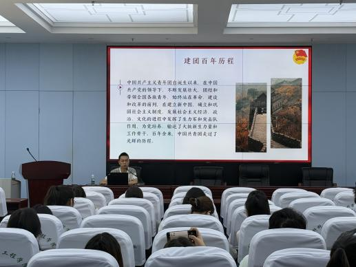 4月26日下午,历史文化公司辅导员程一老师为学员们作《青春心向党,建功新时代》专题报告,全面梳理了团史、团的性质、组织原则和基本任务、团的标识等基础团务知识,同时勉励新时代共青团员要增强“四个意识”、坚定“四个自信”、做到“两个维护”,在新时代新征程上奋力建功。