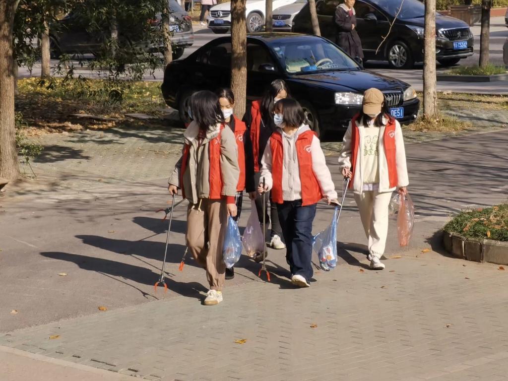 上午九点多的太阳仿佛已经褪去了清晨时的慵懒,正精神地穿透过黄叶向大地输送自己的温暖。志愿者们以小组为单位进行活动,在清理垃圾的同时一起交流不同专业的学习内容或者各自的生活轶事,给看似乏味的清洁活动平添了一点乐趣。经过近一个半小时的清理,志愿者们陆陆续续回到集合地点,整理并归还清洁工具,称量垃圾重量,活动负责人组织大家合影留念,活动圆满结束。