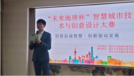 为深入实施国家创新驱动发展战略,顺应智能化新时代的步伐,感受未来城市的智慧生活,2021年12月13日晚七点半,db真人体育官网举办的“未来地理杯”第一届智慧城市技术创意设计大赛在公司一楼报告厅隆重举行。本次比赛,邀请了db真人体育官网五位评委老师:赵锦慧教授,魏立飞教授,王红副教授,叶鹏副教授,杨予静副教授,莅临现场对参赛选手进行评分,大赛由db真人体育官网研究生会主席杜冠儒主持。