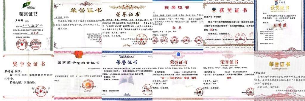 (图为罗锴澍所获部分荣誉证书)