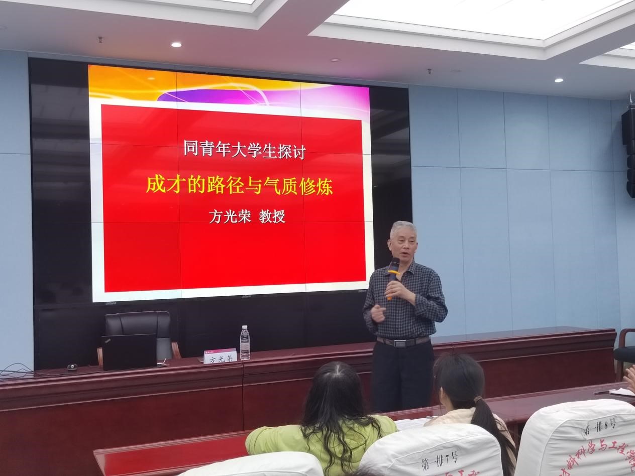 4月25日,DB视讯老教授协会负责人方光荣教授为学员们作《成才的路径与气质修炼》专题报告,向学员们介绍成才的基本路径与自我修养的建议。