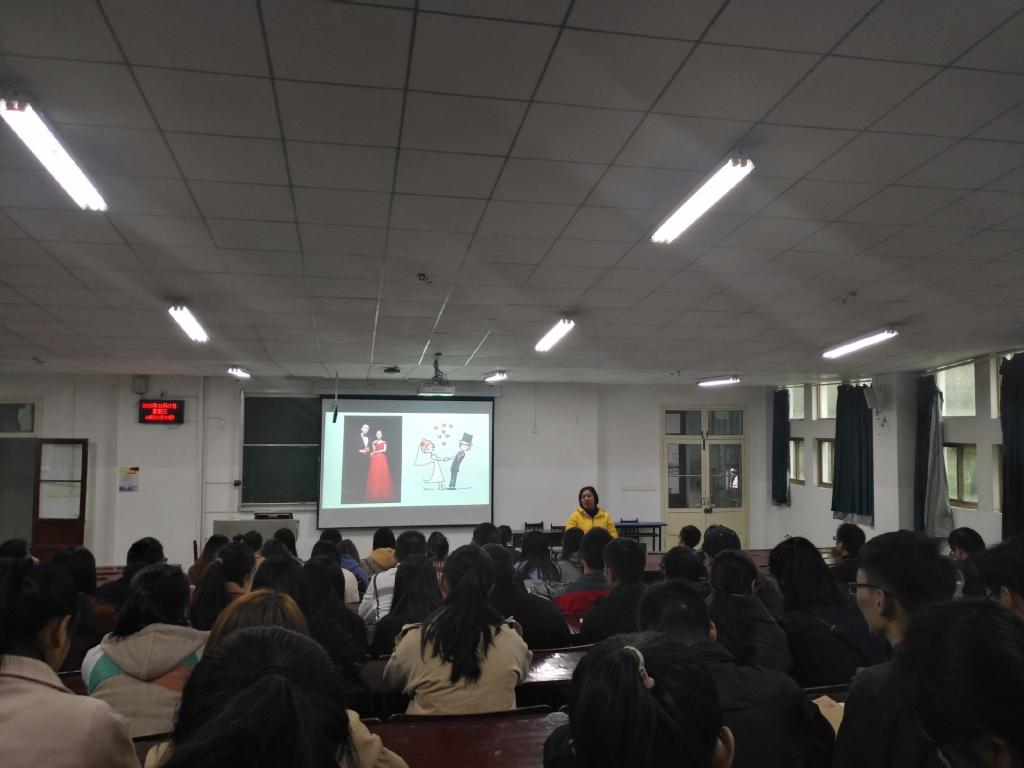 邵老师针对当代研究生的心理特点选择了大家都比较关心的感情问题。用富有激情幽默诙谐的语言,带领同学们进行了一次探索自己的感情世界的旅行。邵老师用一幅类似结婚的照片导入主题,吸引我们的注意力并激发我们的思考;然后向同学们询问如何表达爱意并进行了总结,并展示出男女分别做出什么事情表示不爱了,提醒我们适时、果断的提早放下这段感情;其次,邵老师请两位同学模拟恋人吵架的情景,课堂氛围十分活跃有趣,对男女对待吵架的心理活动进行分析,让恋人彼此了解,减少不必要的误会;老师又介绍了一个比较敏感的感情——跨性别和同性恋;最后,用一个案例引出感情与艾滋病的关系,并给出预防措施。在讲座的最后邵老师建议同学们遇到问题及时去心理咨询师进行咨询保证自己的心理健康。